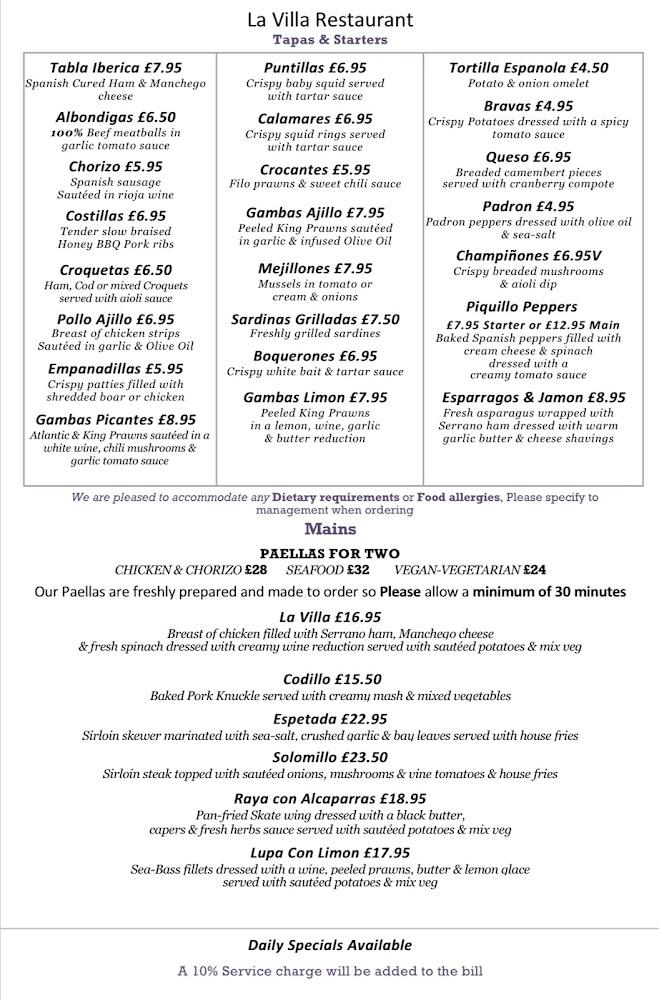 Nestled in Cheam, Sutton, La Villa Restaurant stands out as a beloved Spanish culinary destination known for its authentic fare and lively ambiance. The establishment prides itself on serving fresh, high-quality ingredients, showcasing traditional recipes that have been passed down through generations. Open every day, it invites guests to immerse themselves in an enchanting vibe filled with warmth and joviality. The casual yet romantic atmosphere supports an ideal setting for family gatherings, romantic dinners, or solo dining experiences. The charming decor promotes a feeling of being in Spain, making it a little escape for the community. Plus, the welcoming staff, often recognized by name, embodies the essence of outstanding service that visitors rave about in reviews. Whether you’re looking for a relaxed lunch or a cozy dinner, La Villa ensures each guest feels special while enjoying their meal.